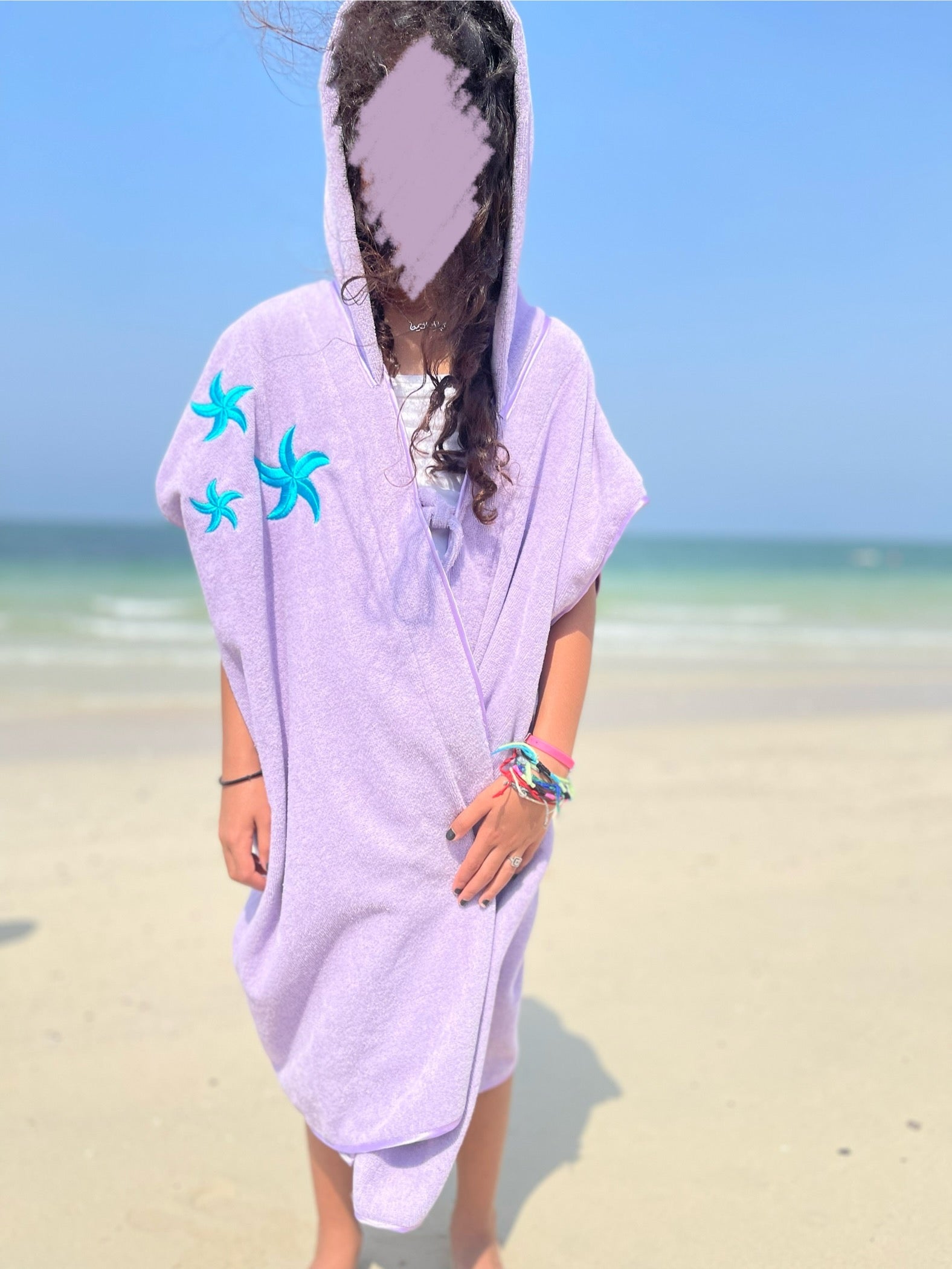 Kids' Purple Towel Bisht with Blue Starfish Embroidery ⭐
