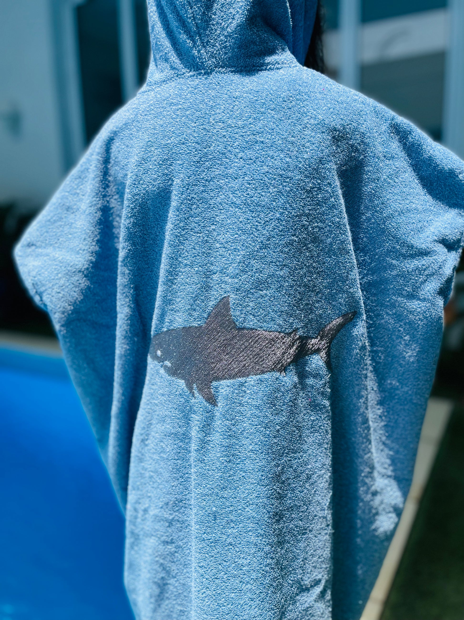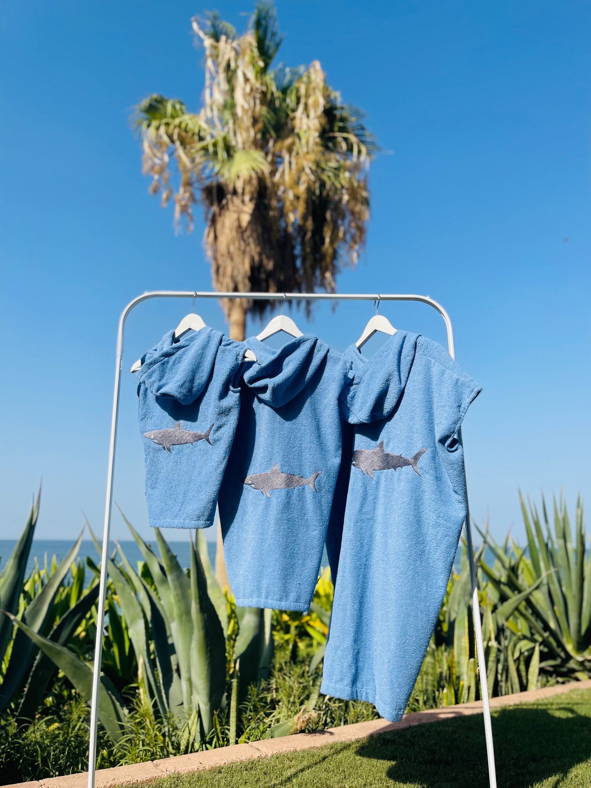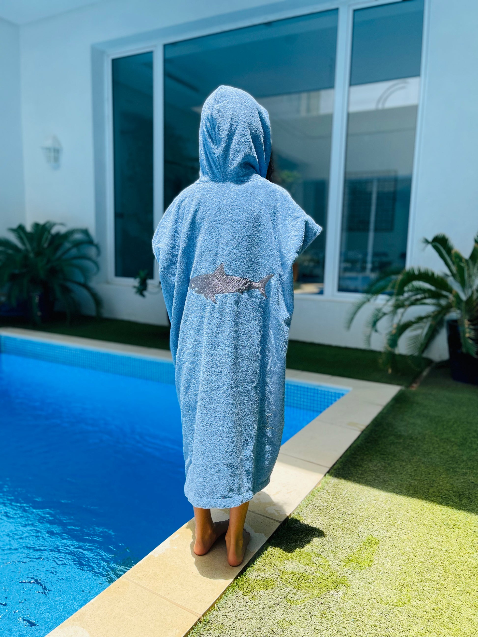 Kids' Blue Towel Bisht with Shark Embroidery 🦈