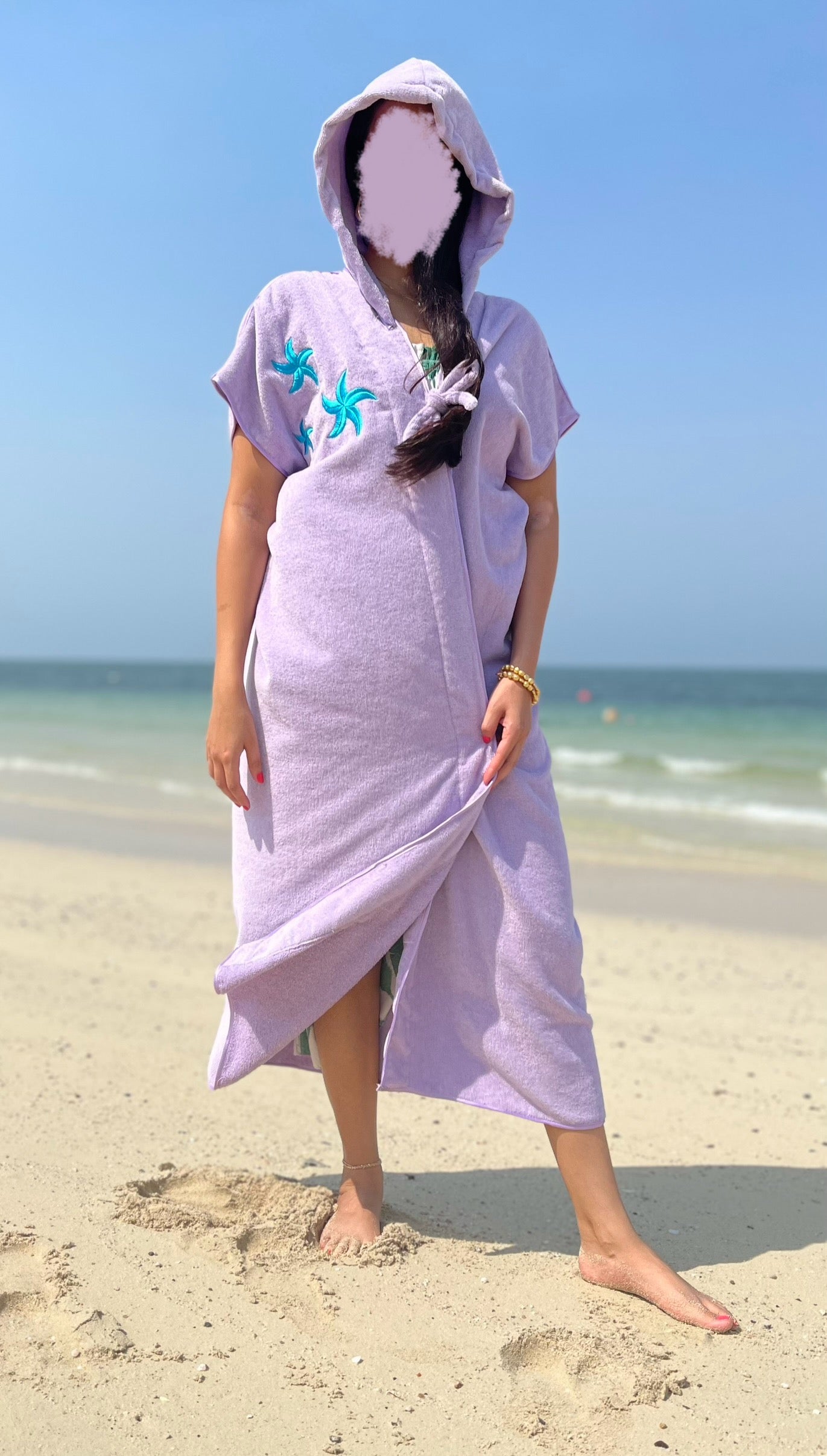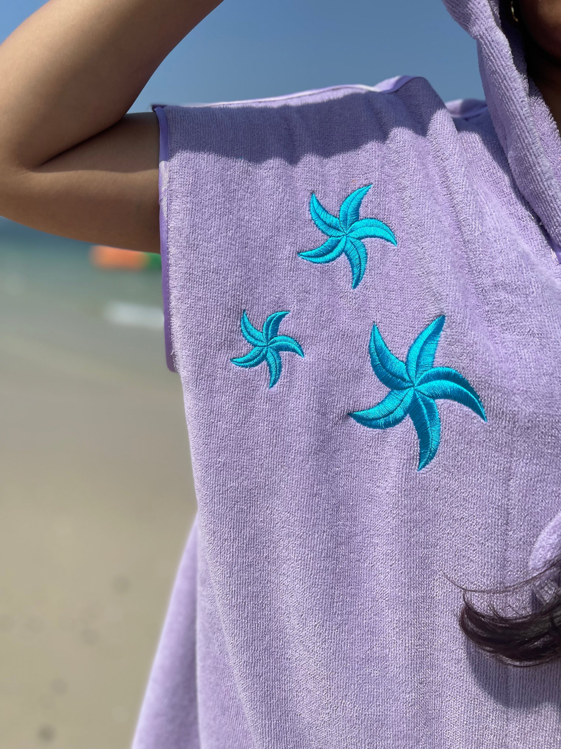 Purple Towel Bisht with Blue Starfish Embroidery ⭐